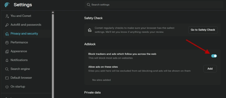 How to Enable/Disable Ad-Blocker in Perplexity Comet Browser?