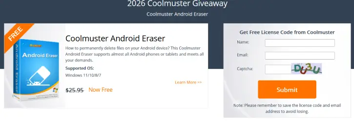 How to get a free 1-year license for Android Eraser (limited time)