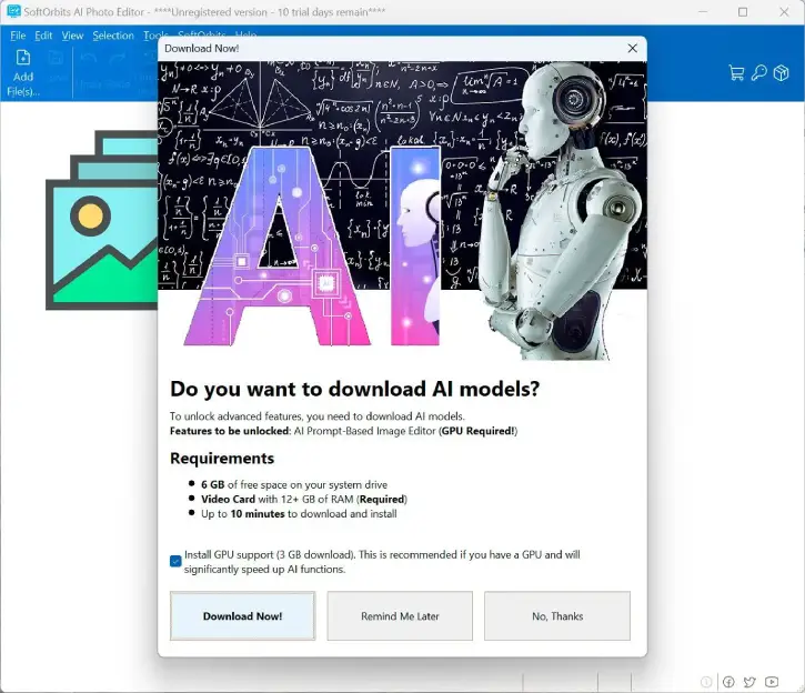 Note: SoftOrbits AI Photo Editor supports Windows 11, 10, 8 and 7 (64-bit/32-bit). This is a lifetime free license for version 10 and the promotion will expire soon.