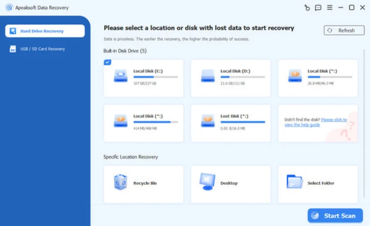 Apeaksoft Data Recovery helps you recover lost or deleted files, including images, videos, documents, and emails, on both Windows and Mac computers. It can retrieve files that were lost due to deletion, formatting, disk damage, or viruses. This makes it essential for maintaining important data.