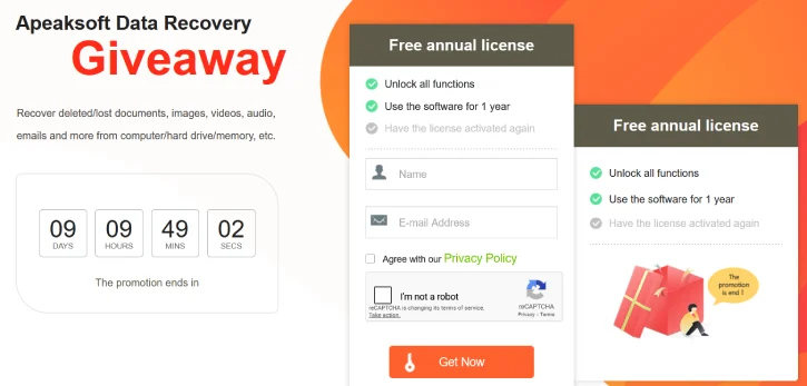 1. Visit the Apeaksoft Data Recovery giveaway page and enter your name and email to submit the form.