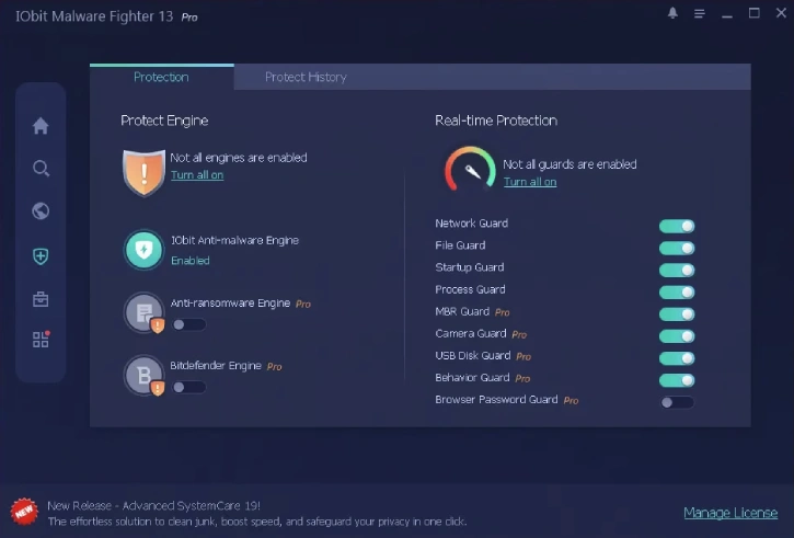 Dual-engine accuracy: IObit and Bitdefender engines combine for higher detection rates and fewer false positives.